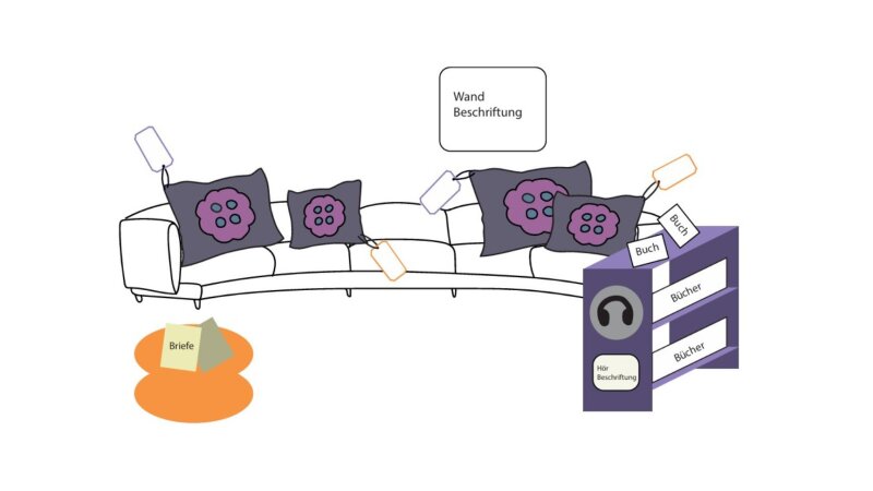 Skizze von einem Sofa mit Kissen