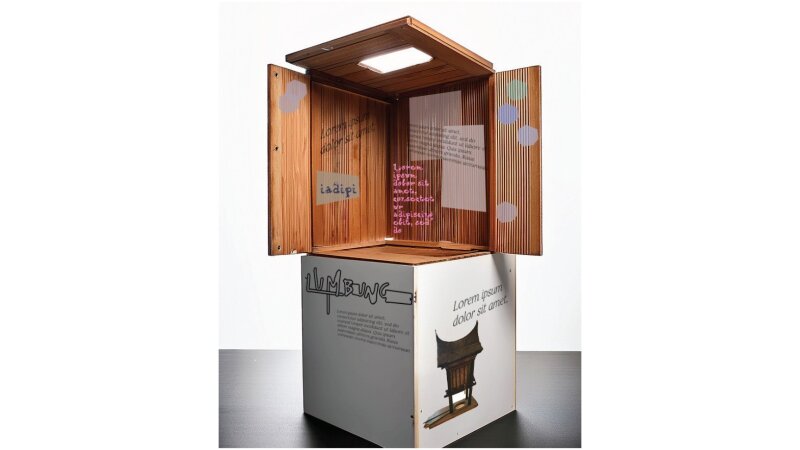 Skizze einer interaktiven Station zur Postkarte